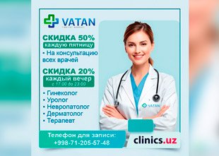 СКИДКА 50% на консультации по пятницам и 20% каждый вечер в клинике Ватан Тиббиёт Маркази