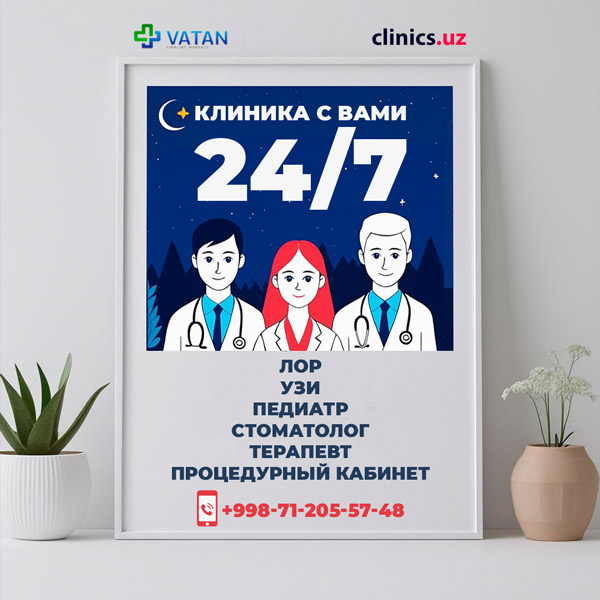 24/7 — круглосуточная забота в Ватан Тиббиёт Маркази, где здоровье — под надёжной защитой.