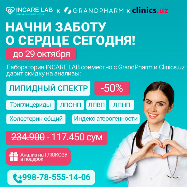 СКИДКА 50% на анализ «Липидный спектр» в клинике Incare Lab!