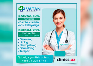 SKIDKA 50% vrachlar konsultatsiyasiga HAR JUMA va 20% har kechga Vatan Tibbiyot Markazida