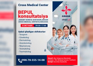 BEPUL konsultatsiya Janubiy Koreya shifokorlaridan CROSS MEDICAL CENTER klinikasida