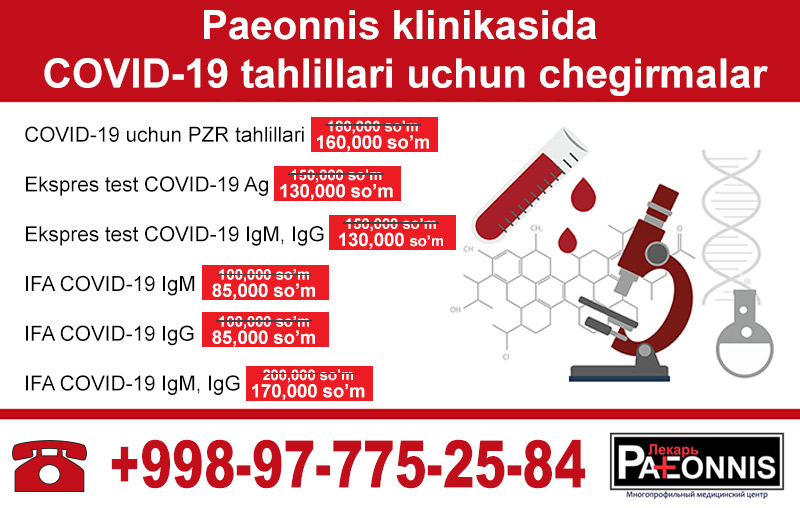 Paeonnis klinikasida COVID-19 tahlillari uchun chegirmalar!