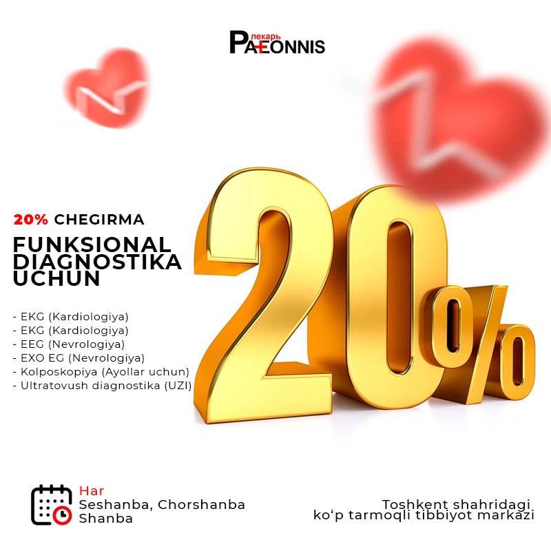 Paeonnis klinikasida funktsional diagnostika uchun 20% chegirma