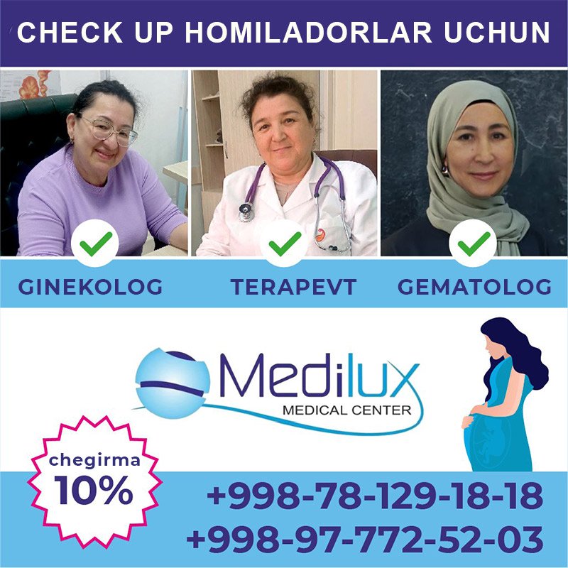 ☎️Batafsil ma'lumot olish uchu +998-78-129-18-18 raqamiga qo'ng'iroq qiling yoki telegramga yozing @Mediluxmedicalcenter