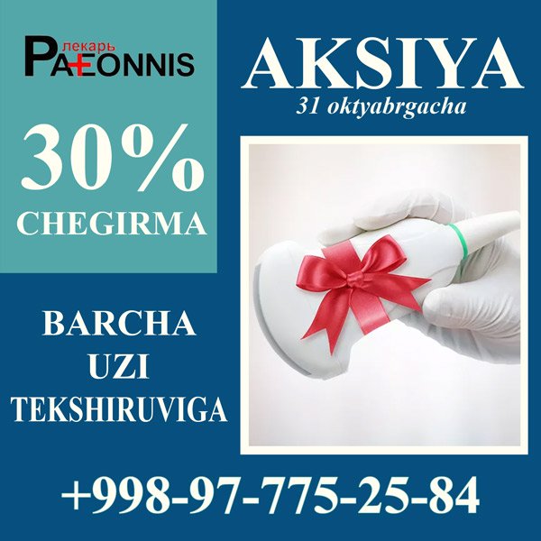 30% CHEGIRMA BARCHA UZI TEKSHIRUVIGA PAEONNIS KLINIKASIDA!
