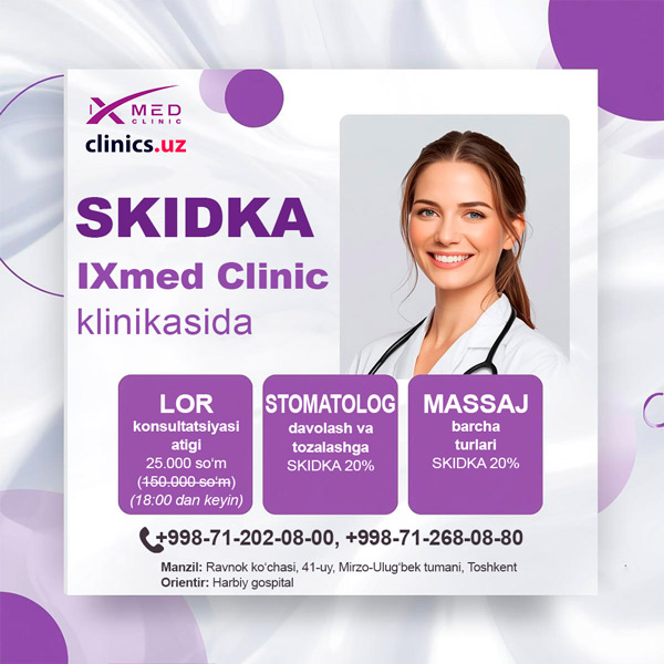 SKIDKA — LOR, stomatolog va massaj xizmatlariga — IXmed Clinicda