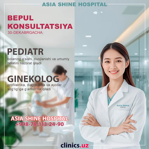 BEPUL KONSULTATSIYA tajribali PEDIATR va GINEKOLOG shifokorlardan ASIA SHINE HOSPITAL klinikasida